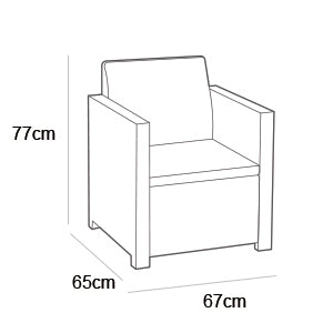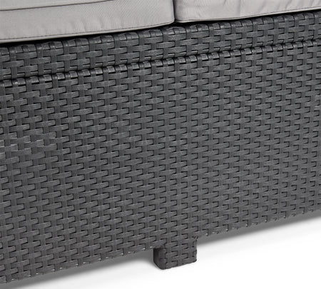 Crafted with a robust metal frame and finished in a chic graphite resin, the Armona set promises durability and stability for years to come. The weather-resistant wicker ensures that your furniture withstands the elements, while the thick polyester cushions provide exceptional comfort. The hidden storage compartment in the coffee table is perfect for stowing away cushions or outdoor accessories, keeping your space tidy and organised.