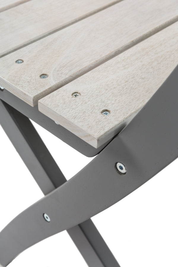 Crafted from FSC 100% Eucalyptus, this bistro set is not only environmentally friendly but also built to withstand the elements. The robust construction ensures durability, while the weather-resistant grey finish protects against wear and tear, keeping your furniture looking pristine for years to come. The folding mechanism allows for easy storage, making it a practical choice for those with limited outdoor space.