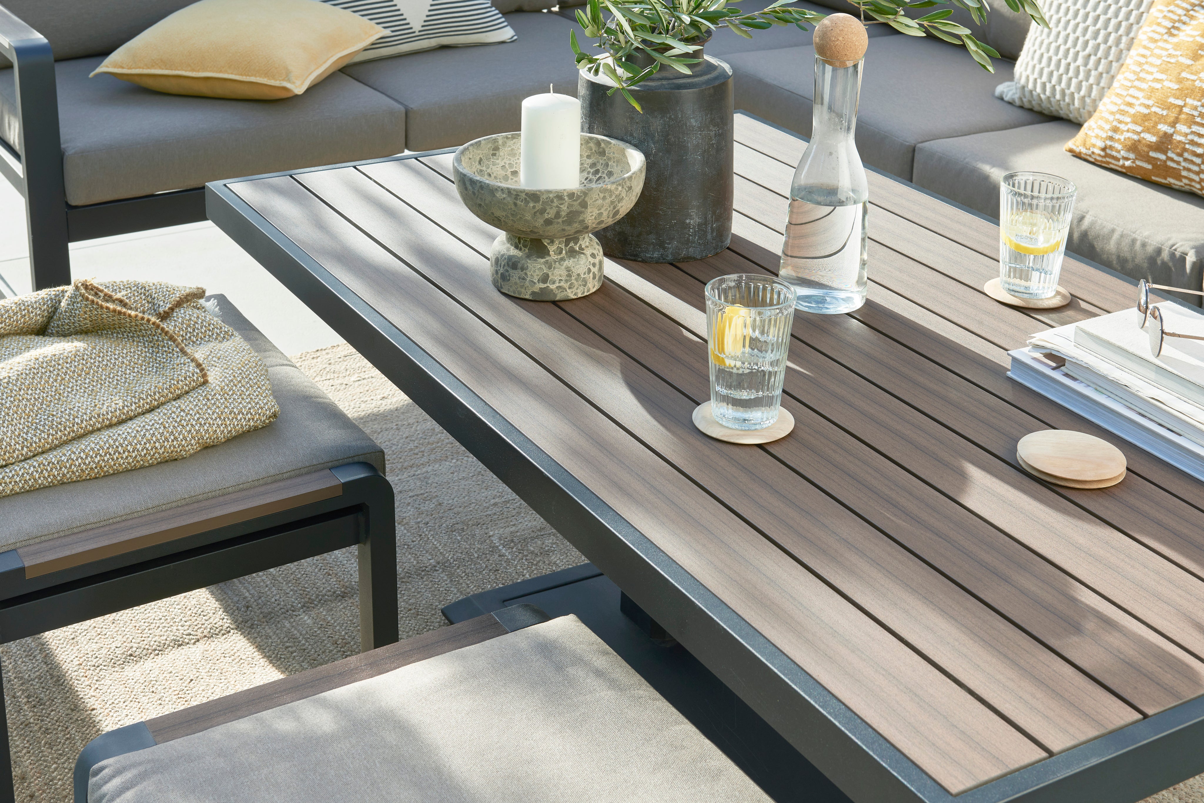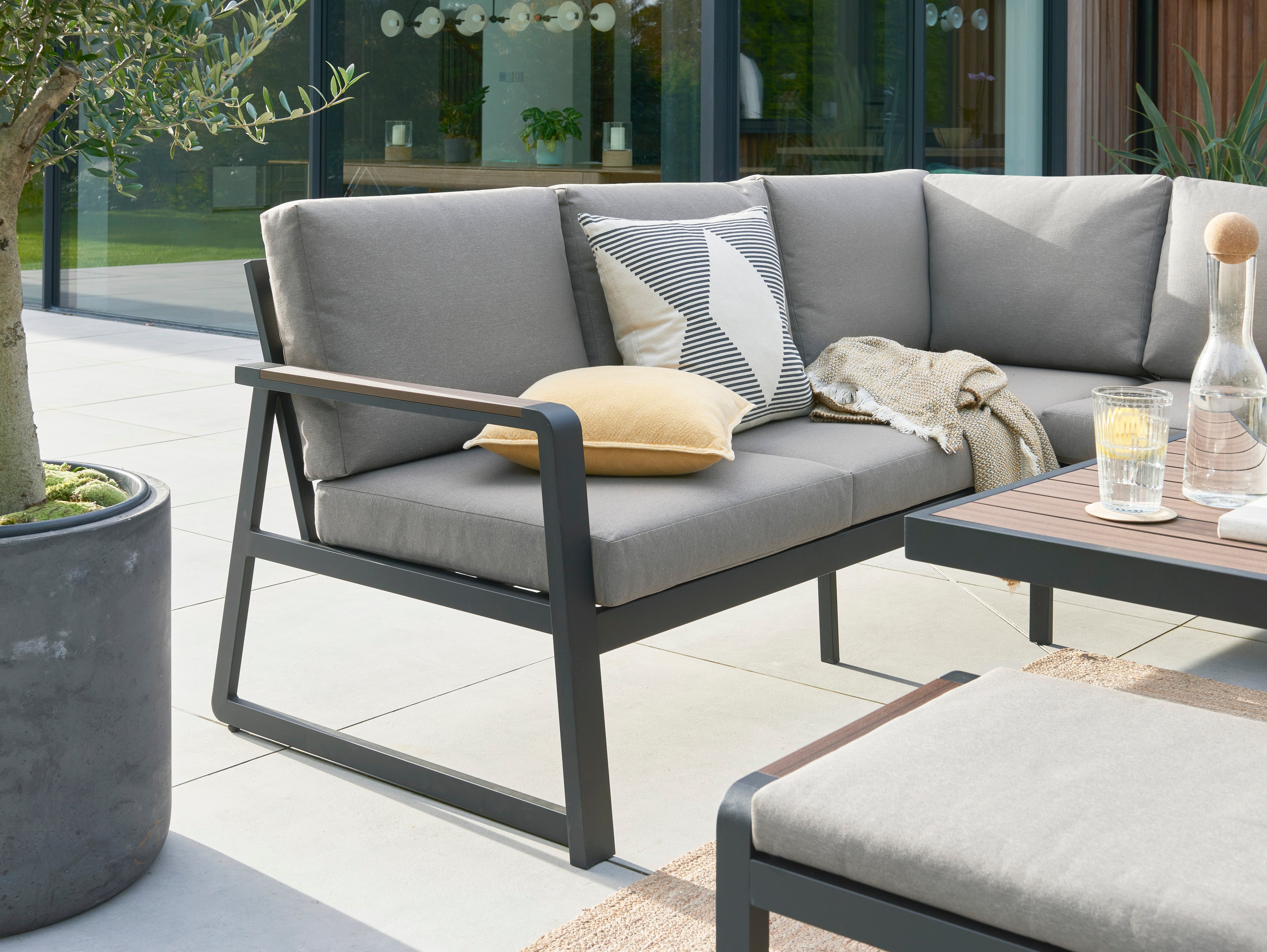 Designed with a modern minimalist aesthetic, the Hemsby set complements any outdoor theme, from contemporary to traditional British gardens. Its versatile configuration allows you to arrange the seating to suit your space, while the easy-to-clean materials ensure that your lounge set stays looking pristine.
