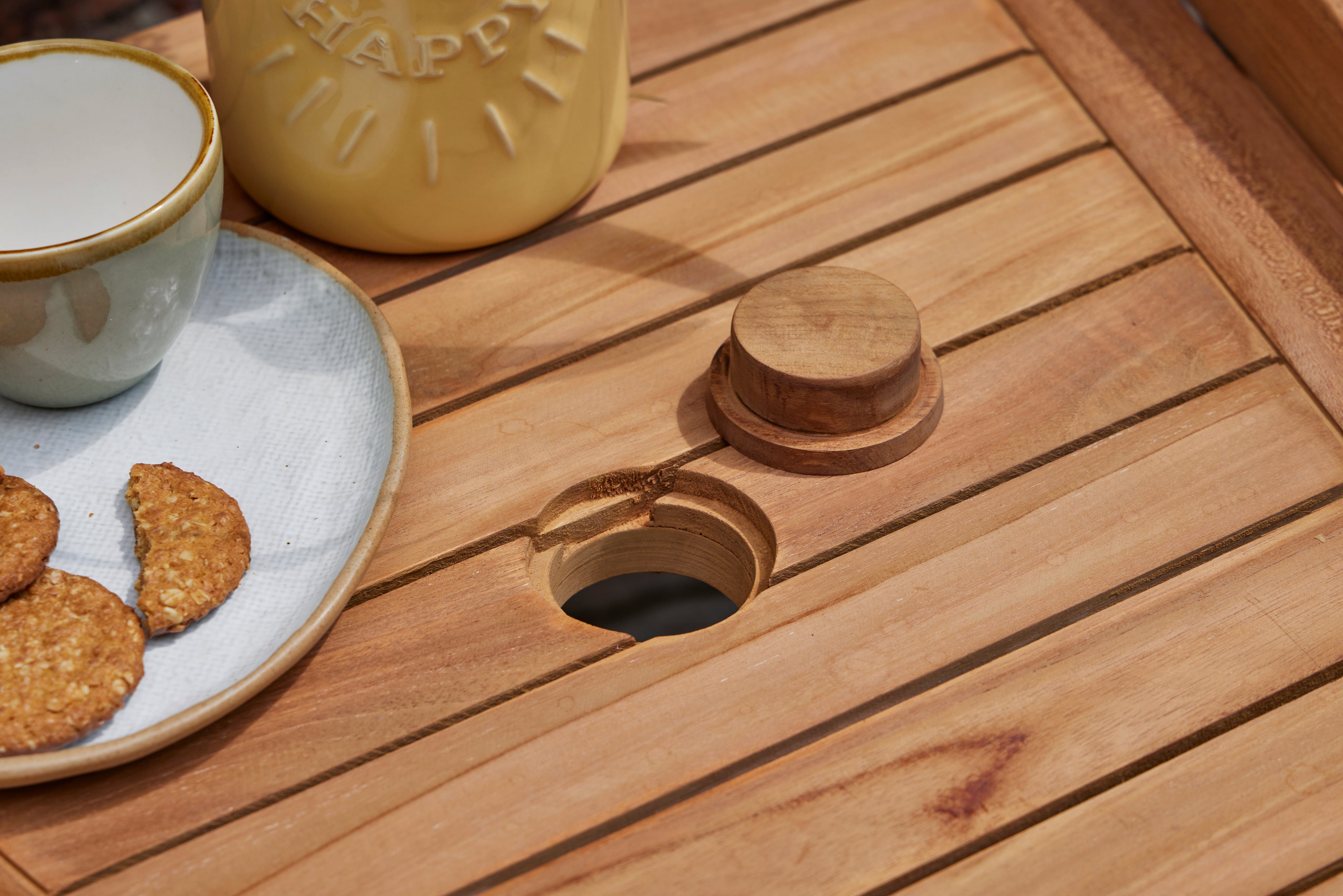 Tailored for smaller areas, the Kinsbury Love-seat is an ideal choice for balconies, patios, or cozy garden corners, providing a space-saving solution without compromising on comfort. The inclusion of versatile connecting tables adds practicality, while the parasol hole allows you to enjoy the outdoors with shade on sunny days