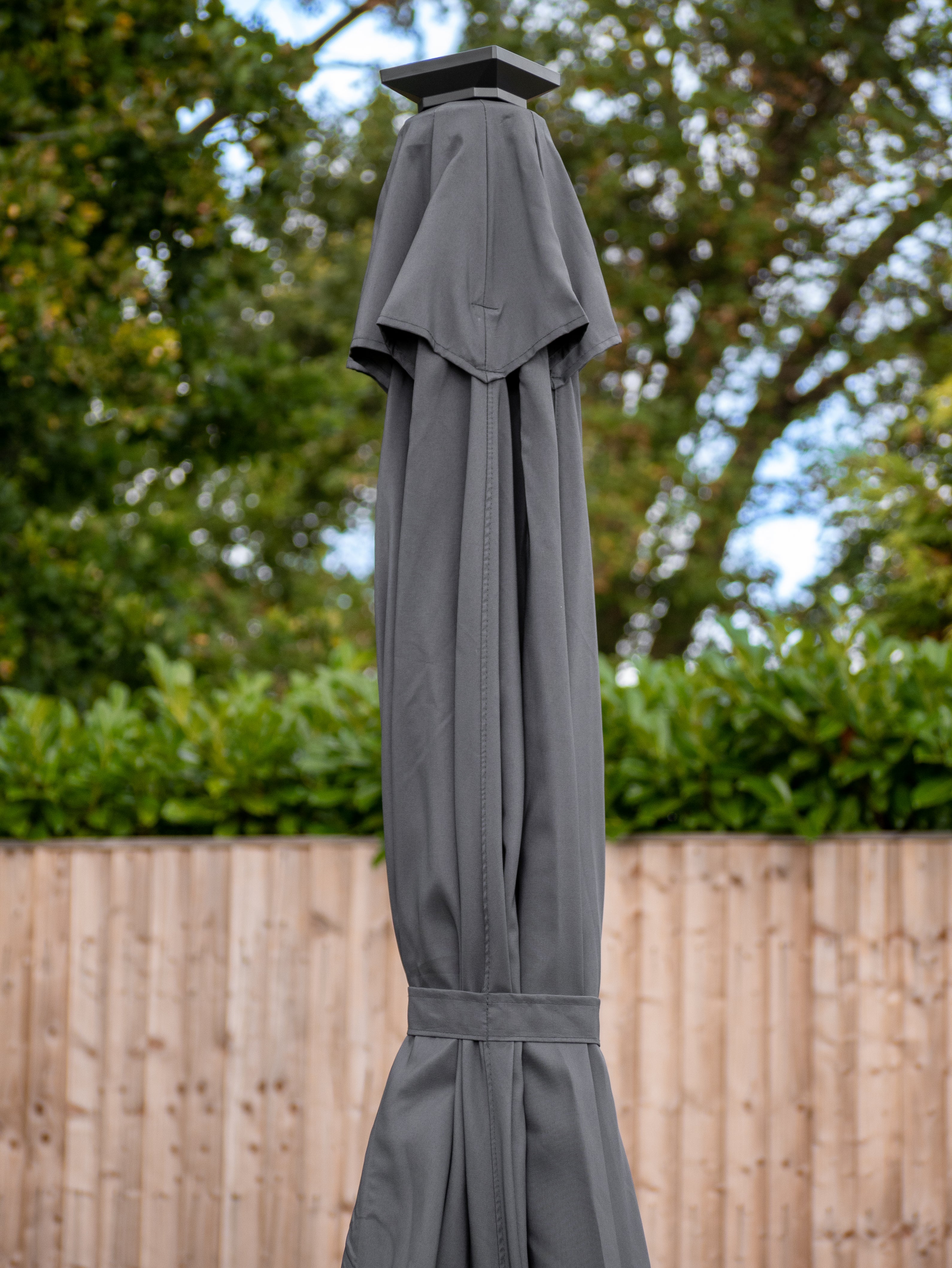 Crafted with a robust aluminium frame, this parasol is built to withstand the elements while maintaining its sleek, modern aesthetic. The weather-resistant polyester canopy not only provides excellent sun protection but is also easy to clean and maintain. The adjustable height and tilt mechanism ensure that you can position the parasol to block the sun effectively throughout the day, while the heavy base keeps it securely anchored, even on breezy days.