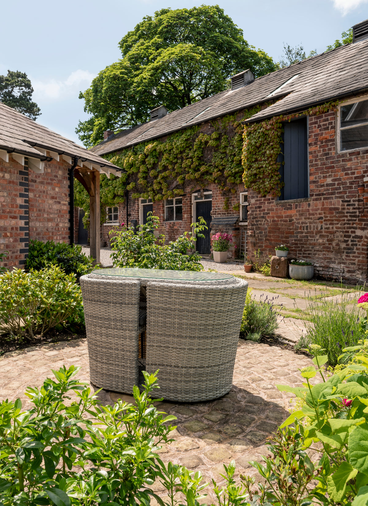 Constructed with a robust aluminium frame and adorned with a double half round textured resin weave, this bistro set is designed to withstand the elements while maintaining its aesthetic appeal. The hand-woven texture not only enhances its visual charm but also ensures long-lasting durability. The comfortable polyester cushions provide added support, allowing you to relax for hours on end. Plus, the clever interlocking design of the chairs means they can be neatly tucked away inside the table when not in use, making storage a breeze.