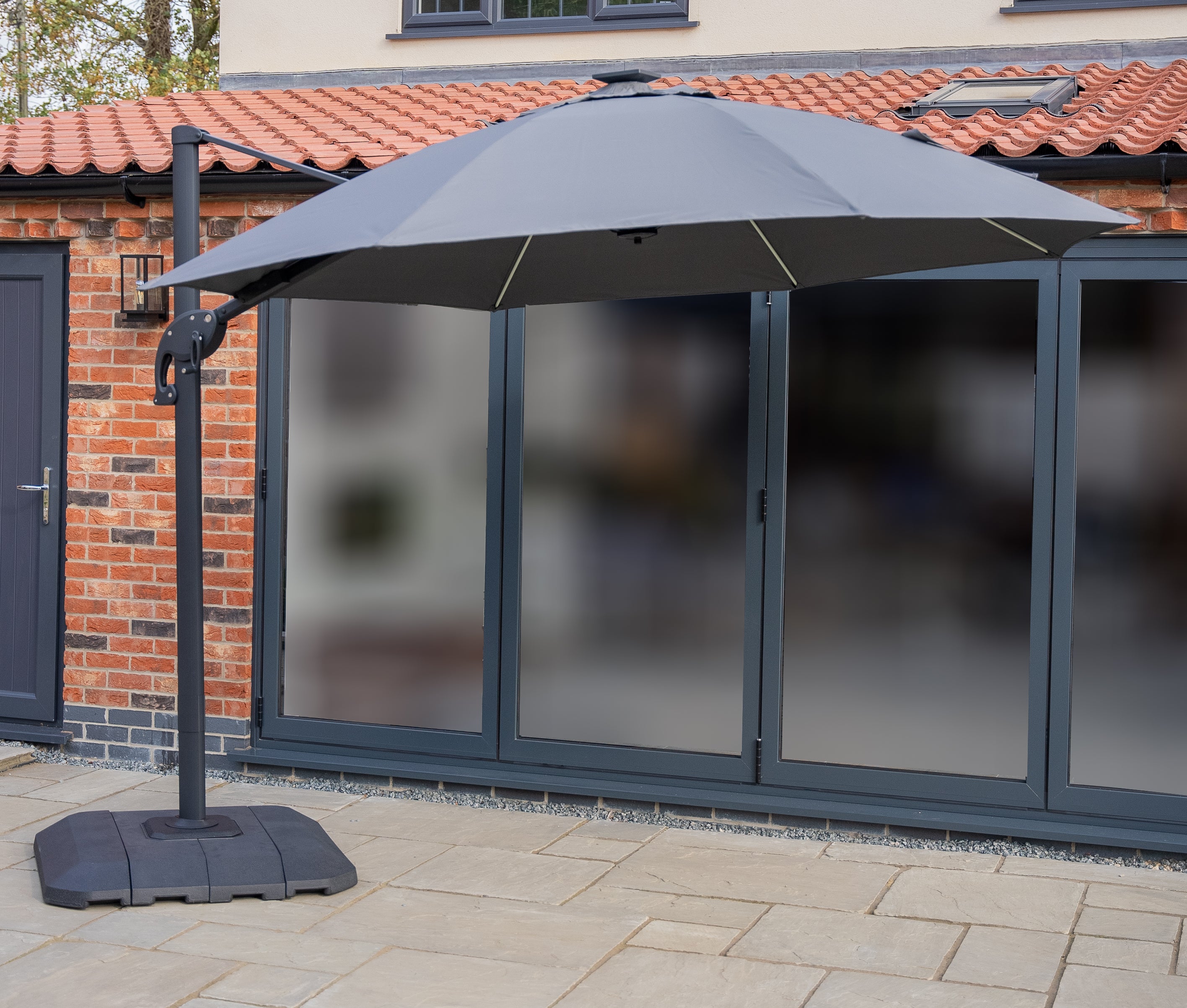 One Box Parasol 3m Round LED Cantilever with Water Filled Base