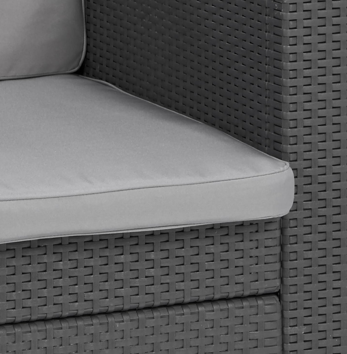 Plush grey Polyester seat and back cushions.