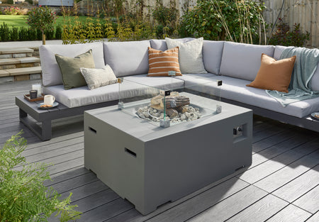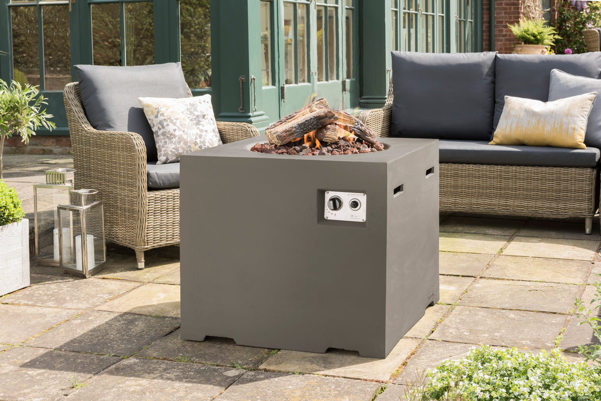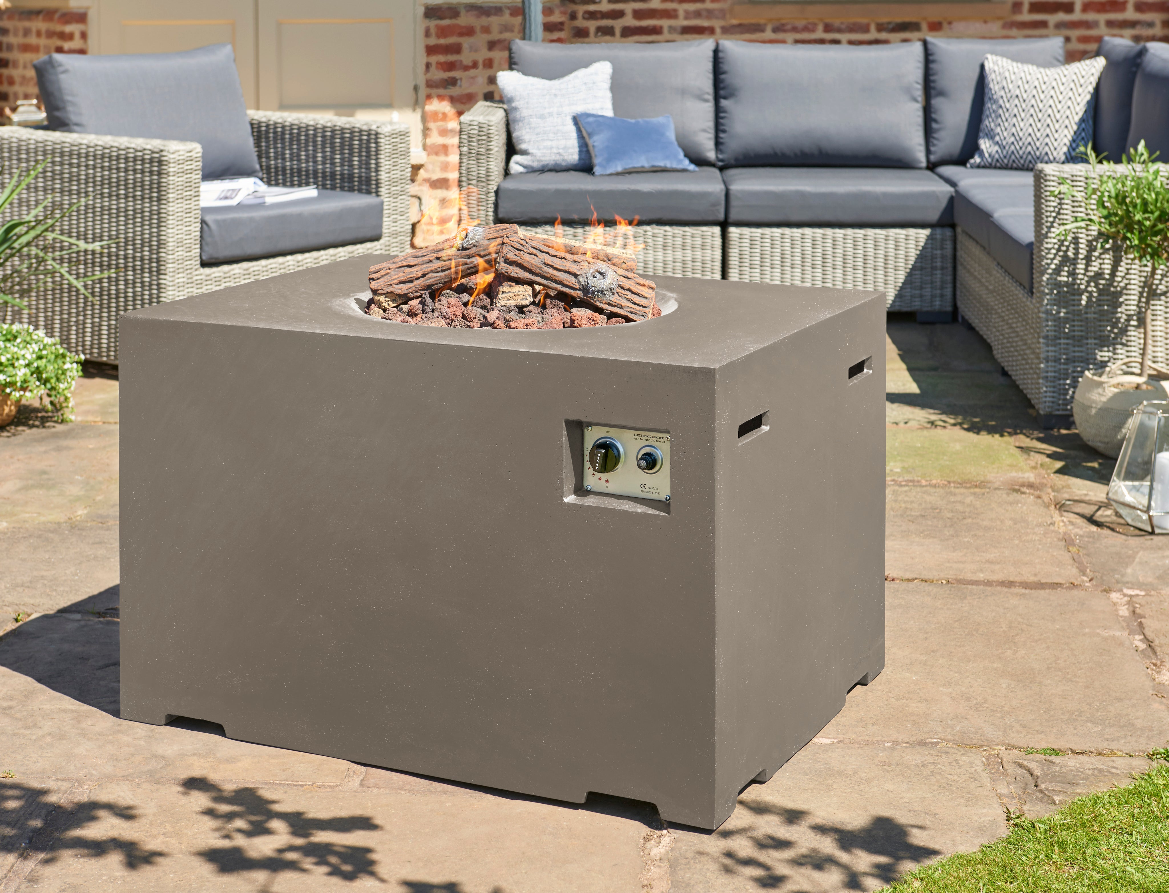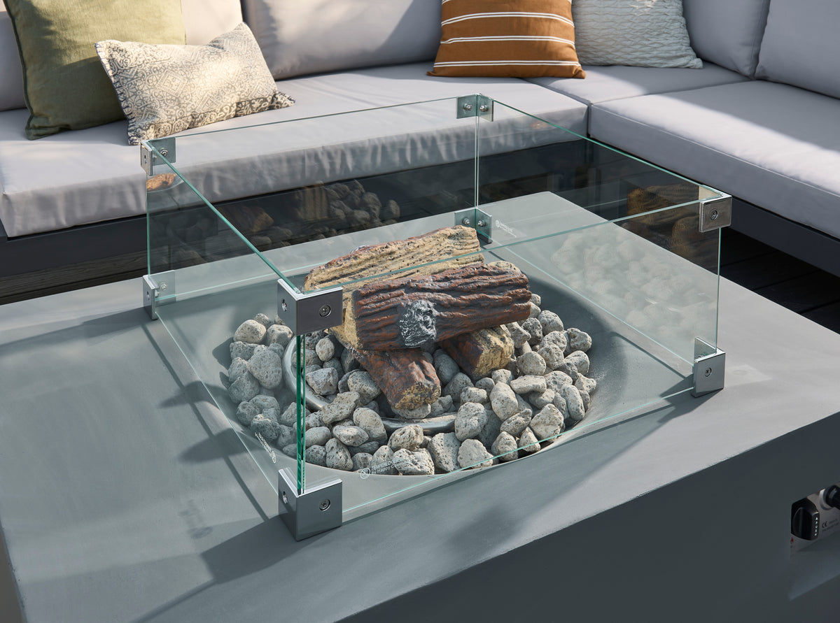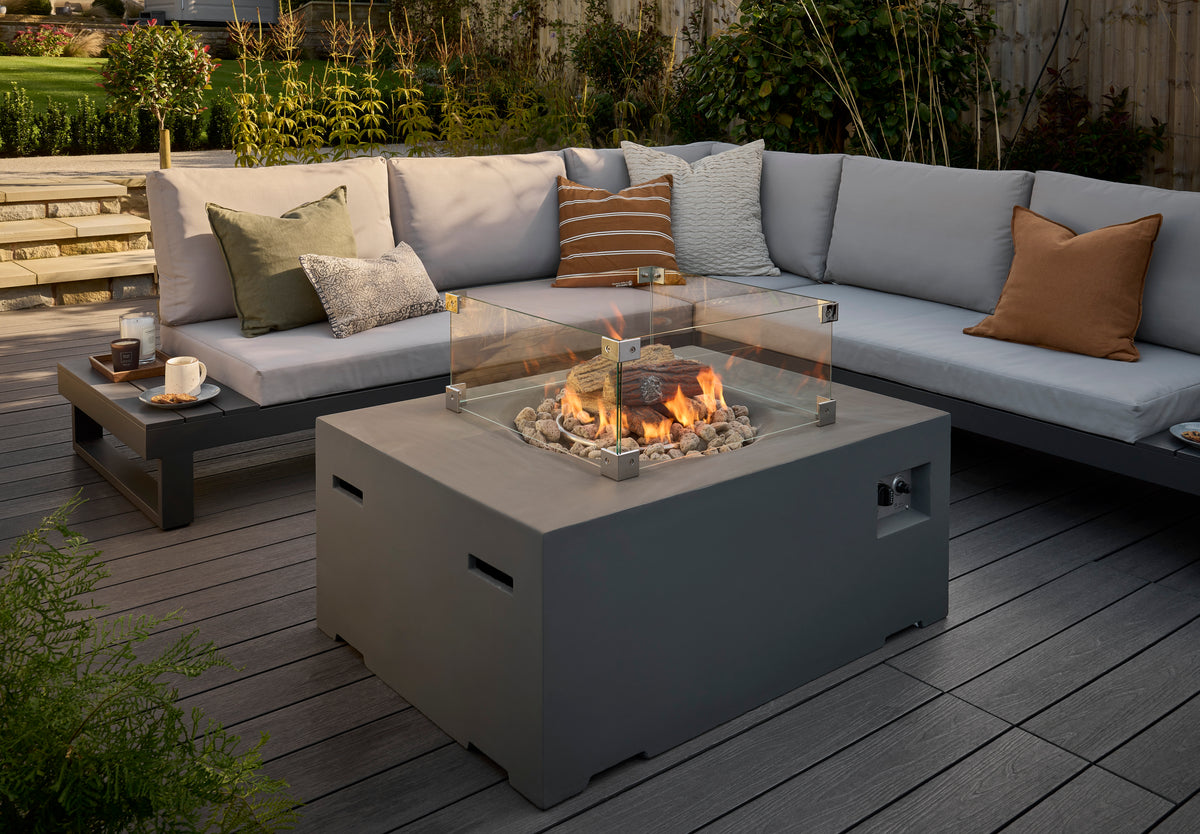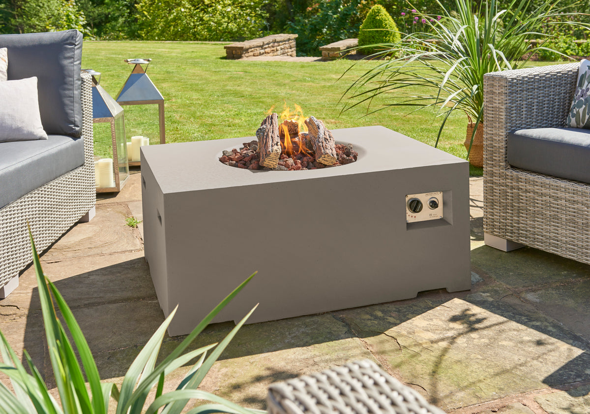 Crafted from high-quality composite materials, this fire pit is built to withstand the elements while maintaining its sleek appearance. The robust rectangular design ensures stability, while the tempered glass top provides a protective barrier around the flames, enhancing safety for children and pets. The included lava rocks and logs add a natural touch, creating a beautiful display that complements your outdoor decor. Plus, the easy-to-clean materials mean you can spend more time enjoying your garden and less time on maintenance.