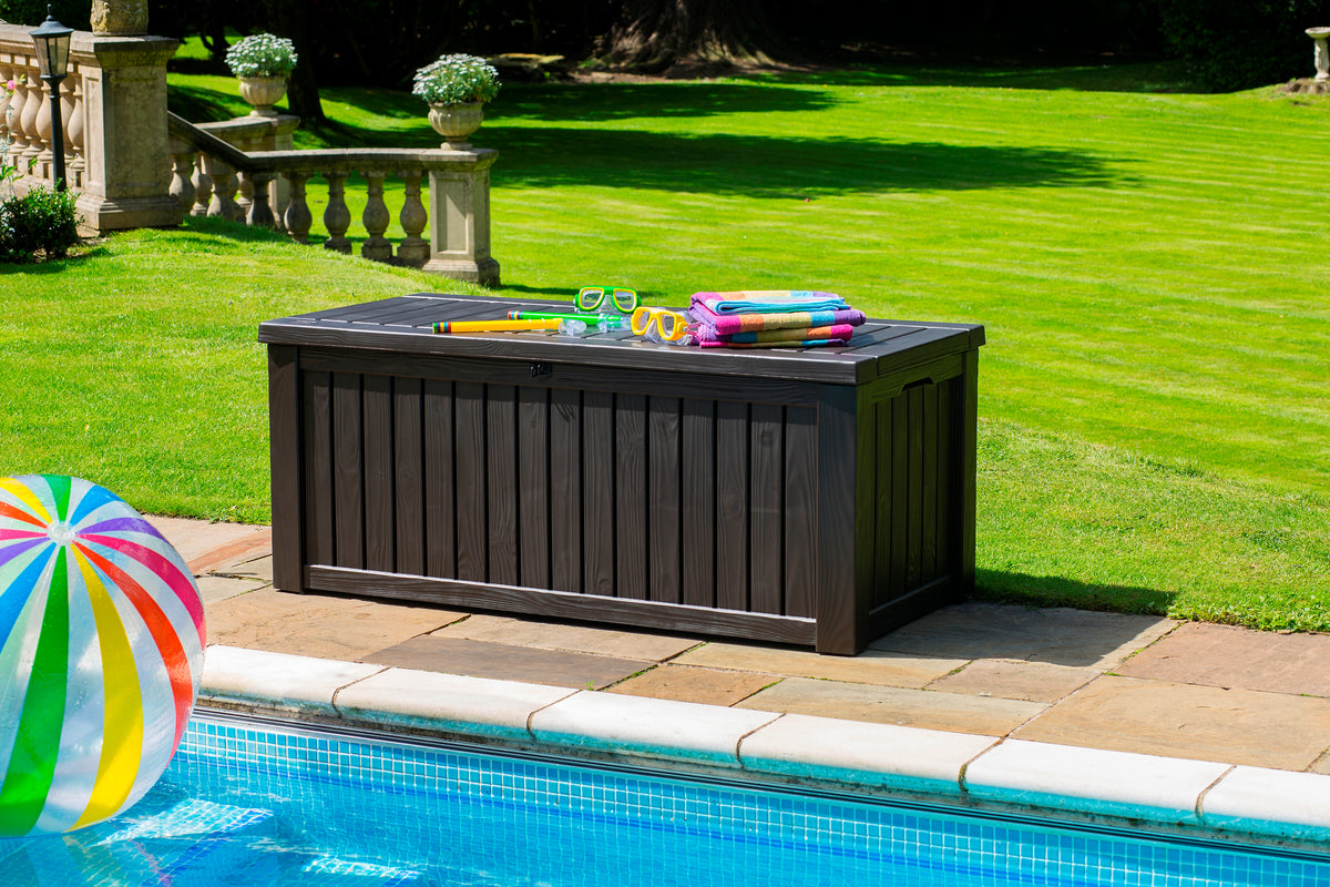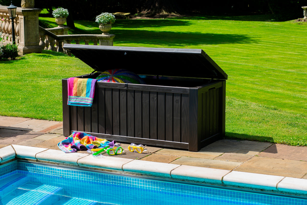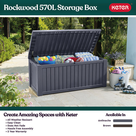 The Norfolk Leisure Rockwood Garden Storage Box is your ultimate outdoor companion, designed to provide ample storage while enhancing the functionality of your garden. With a generous capacity of 570 litres, it’s perfect for stowing away everything from garden tools and equipment to outdoor cushions and children's toys. Say goodbye to clutter and hello to a tidy, organised outdoor space that invites relaxation and enjoyment.