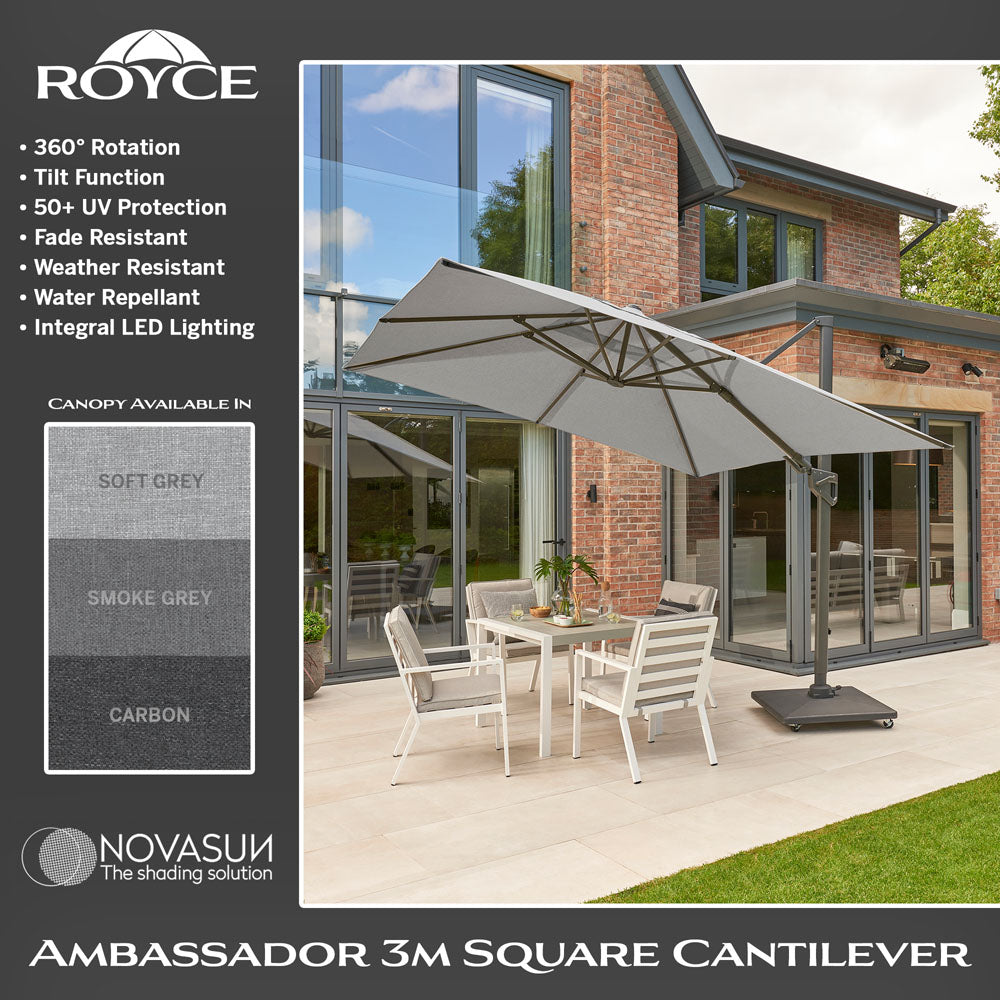 Royce Ambassador LED Novasun 3x3 Cantilever Parasol - Carbon