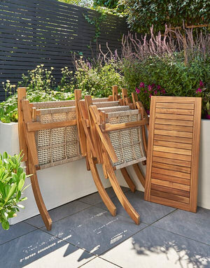 Crafted from high-quality FSC Acacia wood, the Walden Folding Lounge Set is built to withstand the elements while maintaining its beauty. The natural finish enhances the wood's inherent charm, while the woven fabric seats offer breathability and comfort, ensuring you can enjoy long hours outdoors. The clever folding mechanism allows for easy storage and transport, making it ideal for both permanent setups and spontaneous gatherings. This set is designed to last, providing you with a reliable outdoor seating solution for years to come.