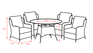 | Dimensions | 120 cm (L) x 120 cm (D) x 75 cm (H) |
