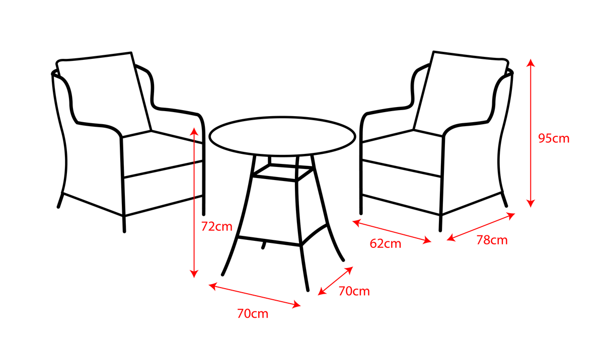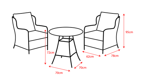 • Dimensions: 70 cm (Length) x 70 cm (Depth) x 72 cm (Height)