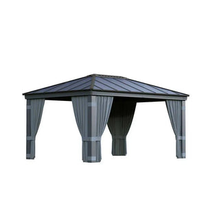 Palram Garden Gazebo Curtain Set is aesthetically appealing and functional; it gives you the privacy you look for and cherish. The lightweight polyester curtain comes with hooks that slide into the clips at the track line of your Dallas Gazebo. This Curtain Set was specifically designed to ensure compatibility with the Dallas Garden Gazebo. One package includes a set of four curtains to cover your entire Dallas Gazebo; Easy to install and easy to use. Includes zipper to connect the screens together and ties to pull the screens to the corner posts. Made of strong polyester, waterproof and lightweight Panels zip together for total privacy or un-zip to let just the right amount of light/privacy Colour: Grey All hardware included Easy to install instruction manual Includes top, middle & bottom corner post tie backs to keep curtains open UV resistant Machine wash cold. No chlorine bleach. Line dryDelivery:
