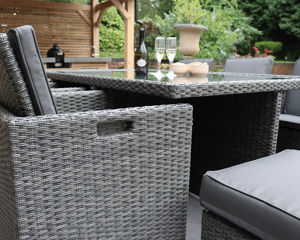 The Paris 10 Seater Rattan Garden Dining Cube Set is perfect for families, entertainers, and anyone who loves to enjoy the outdoors. Its spacious design and stylish appearance make it an excellent choice for those who frequently host gatherings or simply want to enjoy alfresco dining.