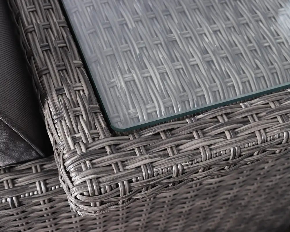 - Material: High-quality, weather-resistant rattan with a tempered glass tabletop