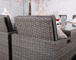 Crafted from high-quality rattan, this dining set is built to withstand the elements, ensuring longevity and minimal maintenance. The tempered glass tabletop not only adds a touch of sophistication but also provides a practical surface that is easy to wipe clean. Each cube chair is designed with comfort in mind, featuring soft cushions that invite you to sit back and relax. The entire set is designed to be both stylish and functional, making it a valuable addition to your outdoor space.