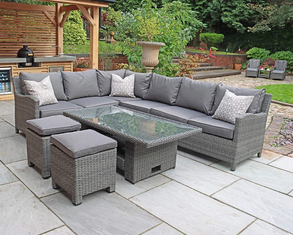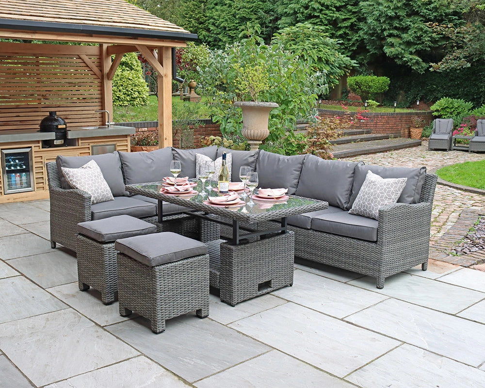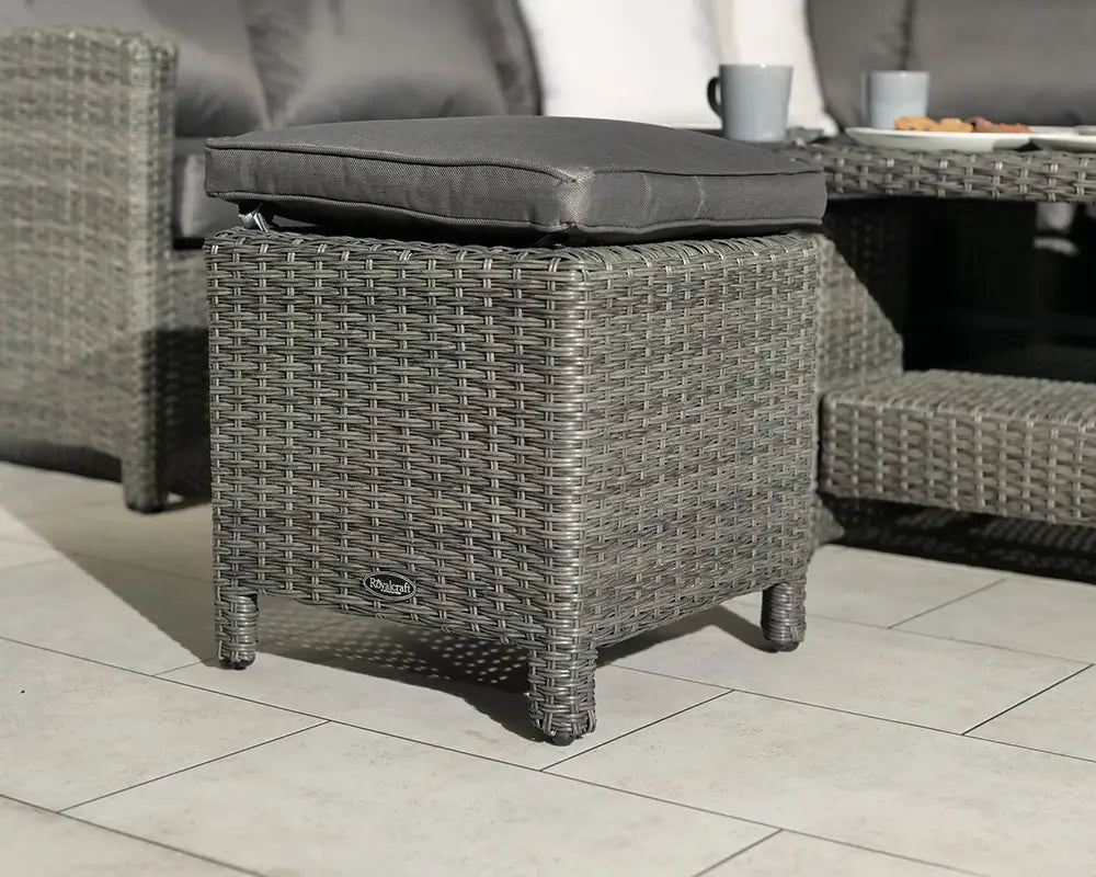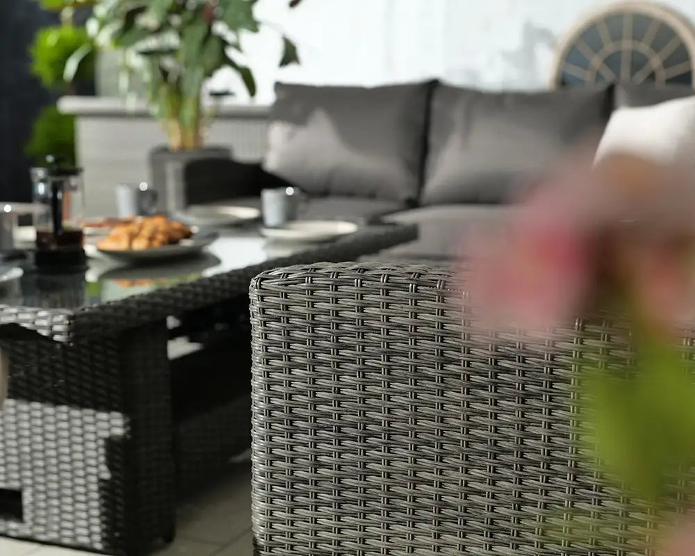 The Paris Rattan Modular Corner Lounge Dining Set with Adjustable Height Table is your go-to solution for creating an inviting outdoor space. This set includes a spacious corner sofa, two versatile ottomans, and a central adjustable table, making it perfect for everything from summer barbecues to quiet evenings under the stars. Its modular design allows you to rearrange the pieces to suit your space and occasion, ensuring that every gathering is a memorable one.