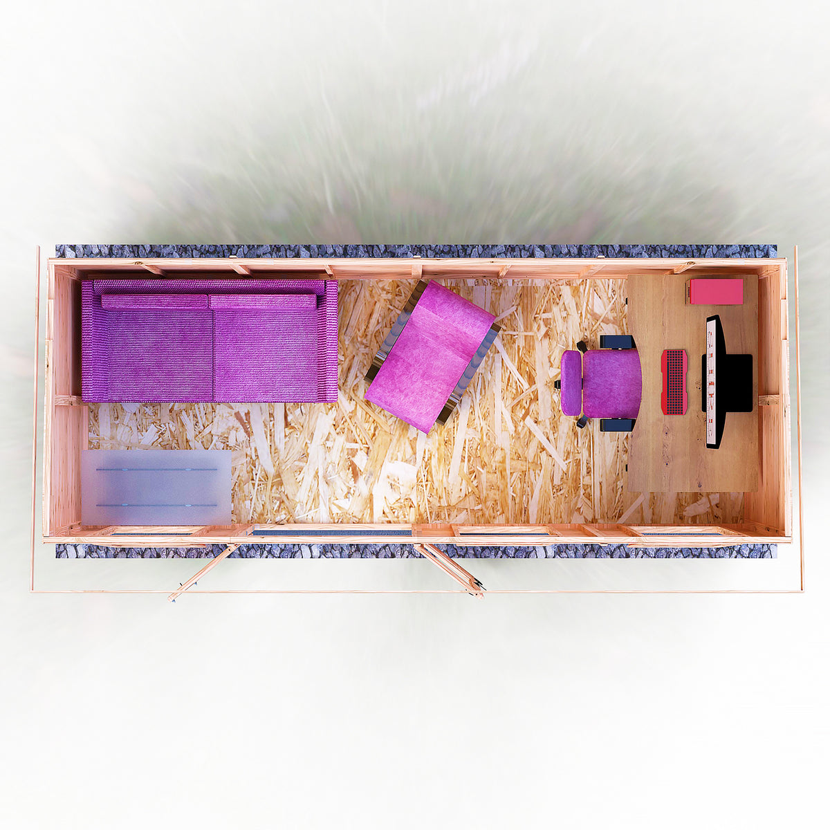 Designed with accessibility in mind, the double doors create a grand entrance, making it easy to move furniture in and out. The three large windows not only flood the interior with natural light but also promote ventilation, creating a pleasant atmosphere. The spacious interior allows for customisation, whether you want to set up a cozy reading nook or a functional workspace. Maintenance is minimal, requiring only periodic treatment to keep the wood in top condition.