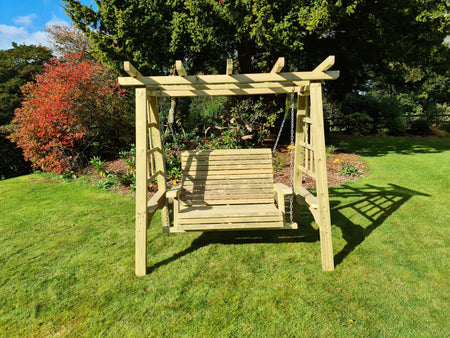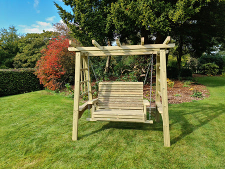 Practicality is at the heart of this swing seat's design. Its spacious dimensions allow for comfortable seating, while the sturdy construction ensures safety and stability. The natural wood finish can be customised with stains or paints to match your garden decor, making it a versatile addition to any outdoor space. With minimal maintenance required, simply enjoy your swing seat and let it enhance your garden experience.