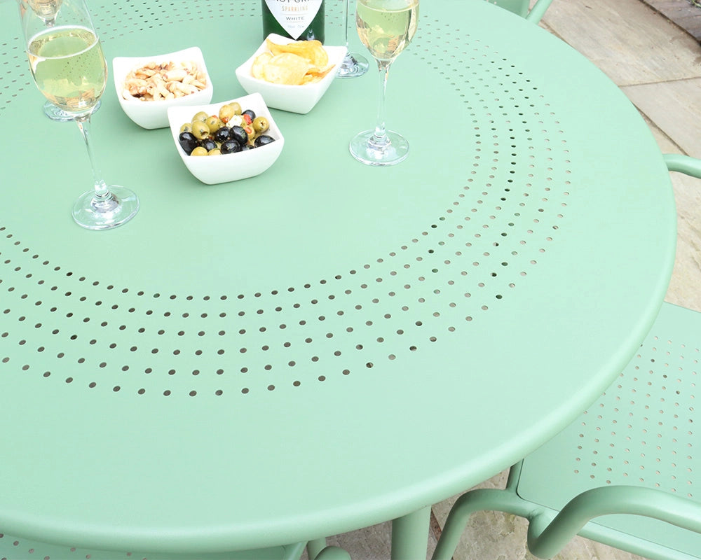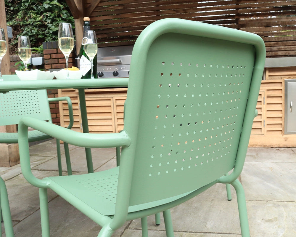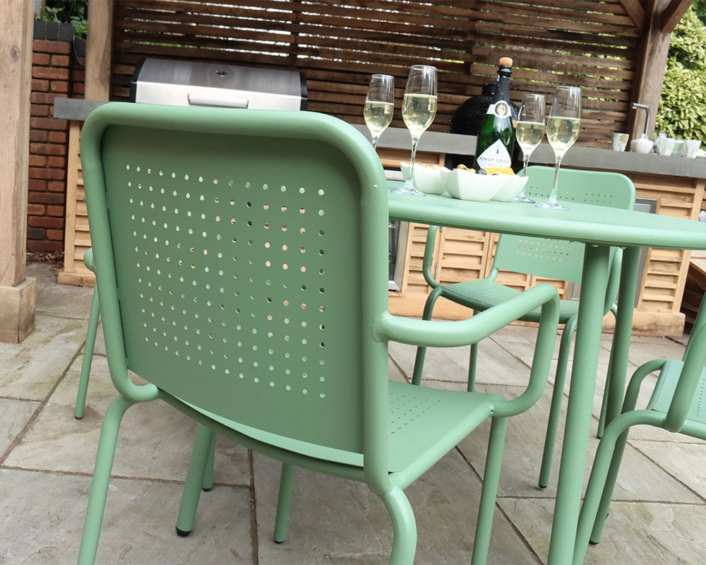 Crafted from high-quality galvanised steel, this dining set is built to last. The weather-resistant finish ensures that it can withstand the unpredictable British weather, providing you with a reliable outdoor dining solution for years to come. The lightweight design allows for easy rearrangement, while the stackable chairs offer a practical storage solution when not in use.