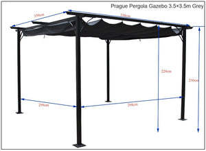 AnnettePrague 3.5m x 3.5m Grey Steel Framed Gazebo & Pergola with Retractable Roof