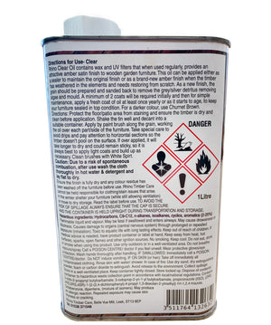 The Rhino Clear Oil 1 Litre Tin is ideal for deckings and garden furniture, it easy to apply making it convenient to use, providing even coverage and reaching difficult-to-access areas effectively. The oil provides weather resistance, protecting the wood from damage caused by rain, sun exposure, and other outdoor elements. In addition it will helps to preserve the quality of wood by preventing it from drying out, cracking, or fading over time.