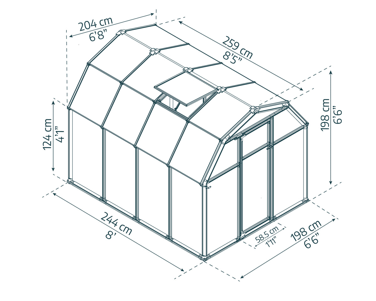 • Dimensions: 6ft (Length) x 8ft (Width) | Total Height: 198cm (6ft 6ins) | Eaves Height: 124cm (4ft)