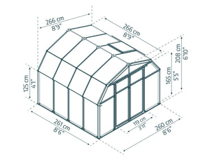 - Dimensions: Height: 208cm (6ft 10ins), Width: 266cm (8ft 9ins), Depth: 266cm (8ft 9ins), Internal Height: 198cm (6ft 6ins), Door Height: 165cm (5ft 5ins), Door Width: 119cm (3ft 11ins)