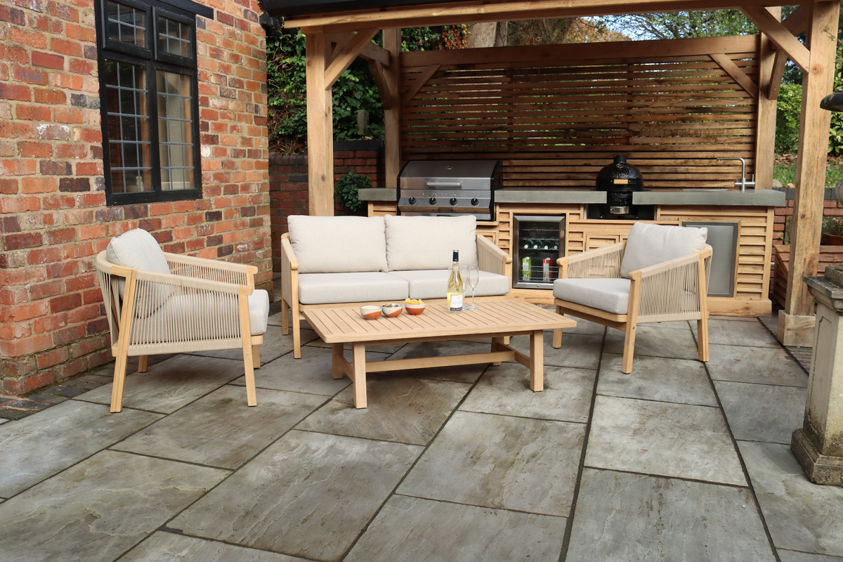 | Materials | Durable wooden frame, weather-resistant cushions |
