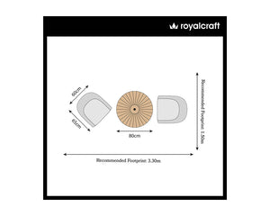 | Dimensions | Table: H: 75cm x W: 80cm x L: 80cm Chairs: H: 80cm x W: 60cm x L: 65cm |