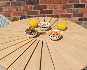 Crafted with a sturdy wooden table and stylish woven rattan-style chairs, the Roma Bistro Set is built to last. The weather-resistant materials ensure that your furniture can withstand the unpredictable British weather, while the soft cushions provide added comfort for those long summer evenings. The set’s modern yet timeless design makes it a versatile choice for any outdoor decor.