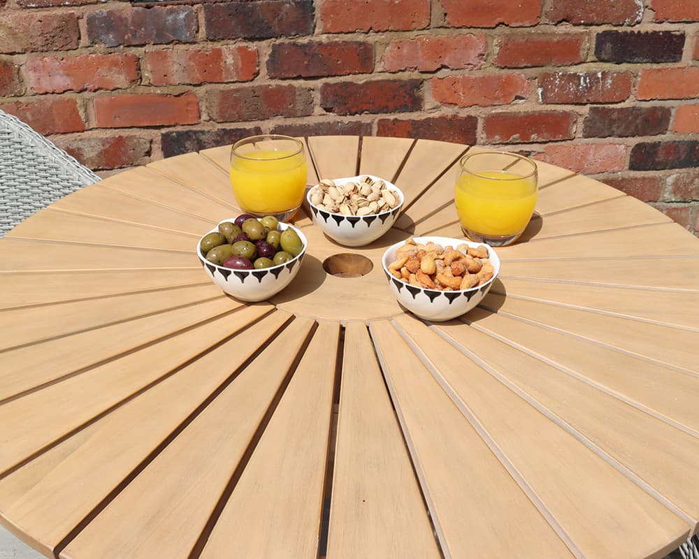 The Roma 80cm Round Sunray Garden Bistro Set is perfect for couples, small families, or anyone looking to enhance their outdoor space with a touch of elegance. Ideal for those who enjoy alfresco dining or simply want a cozy spot to unwind, this set is a must-have for your garden or patio.