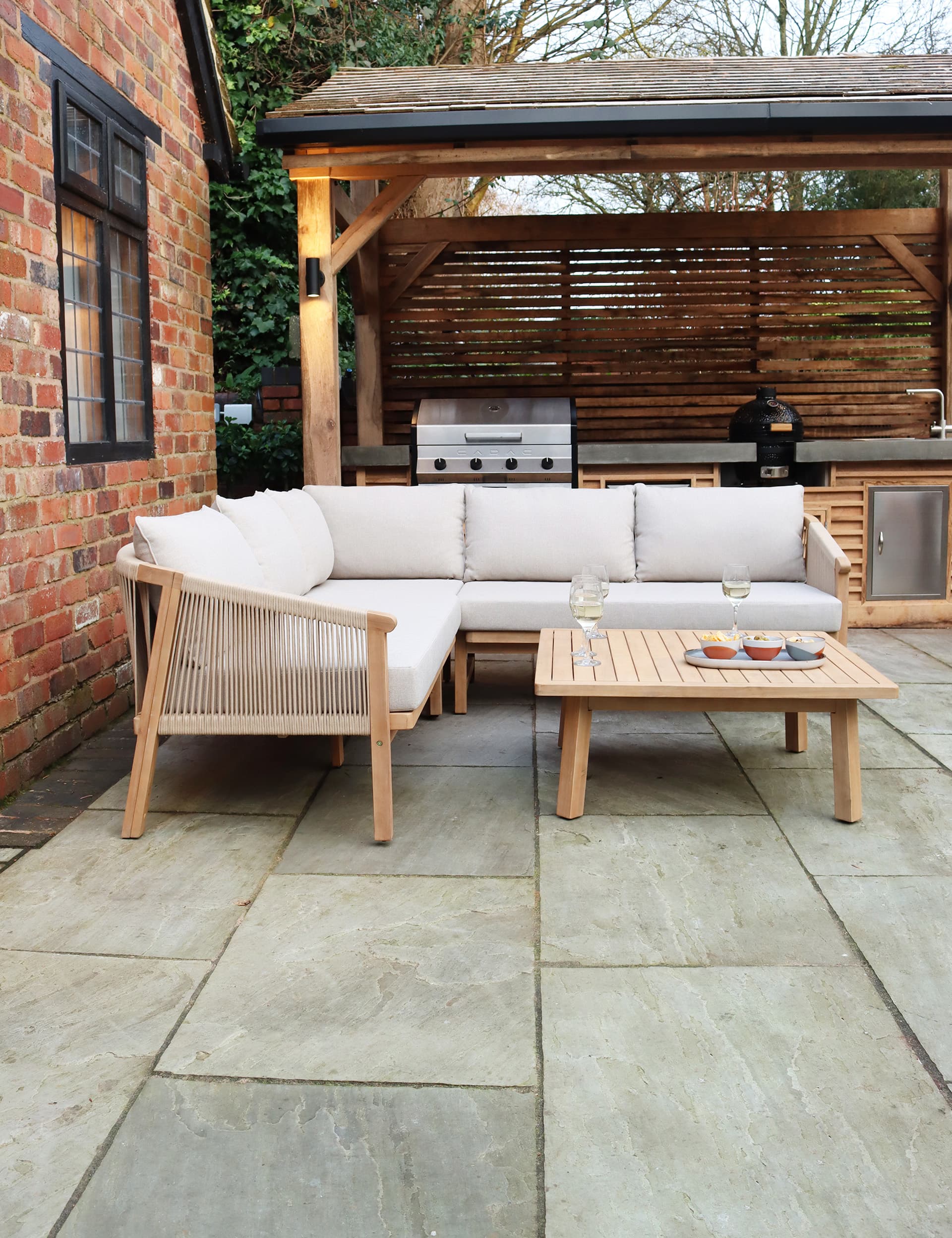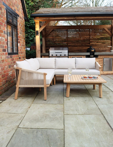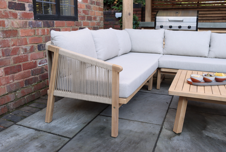The modern aesthetic of the FSC 1 ROMA L Corner Set features a neutral colour palette that seamlessly blends with any garden decor. Its clean lines and minimalist design add a touch of elegance, while the combination of smooth wood and soft fabric creates a visually appealing contrast. Installation is straightforward, and the easy-to-clean materials ensure that your furniture remains looking fresh and new, season after season. Enjoy the benefits of a versatile outdoor seating arrangement that adapts to your lifestyle and enhances your outdoor cooking and dining experiences.