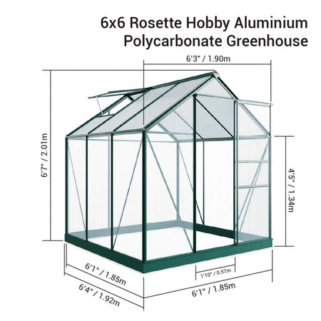 The Rosette Hobby Greenhouse is your gateway to a flourishing garden, designed specifically for hobby gardeners who want to extend their growing season. With its generous 6x6 dimensions, this greenhouse provides ample space for nurturing a variety of plants, whether you're starting seedlings in spring or overwintering delicate blooms in winter. Its enclosed design protects your plants from harsh weather, pests, and diseases, making it an essential addition to any garden enthusiast's toolkit.