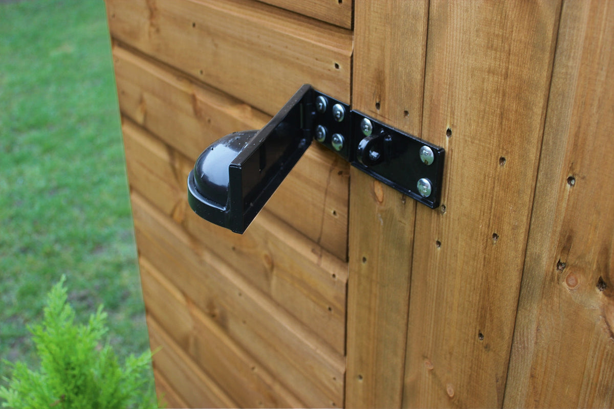 If anyone does attempt to get in, the sturdy, fully framed, ledged and braced door has security bolted zinc hinges and a padbolt protector.