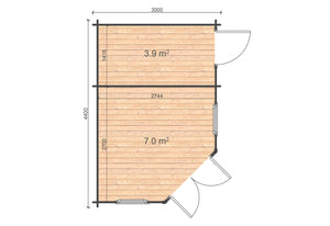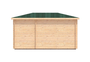 | Construction details | 44mm interlocking logs, 19mm T&G roof and floor |