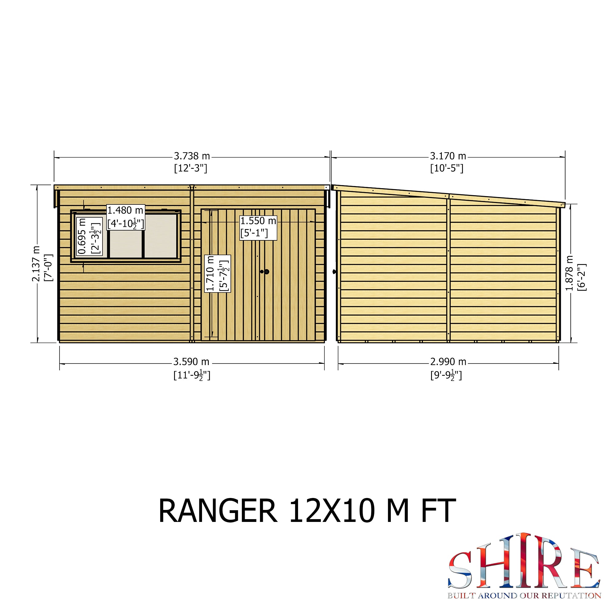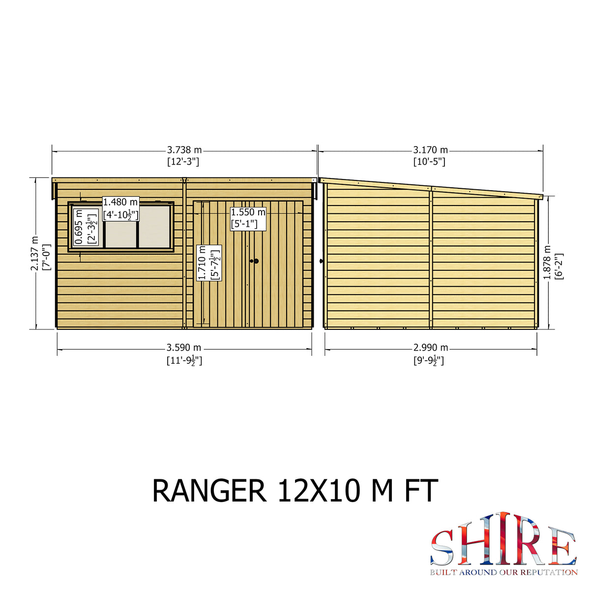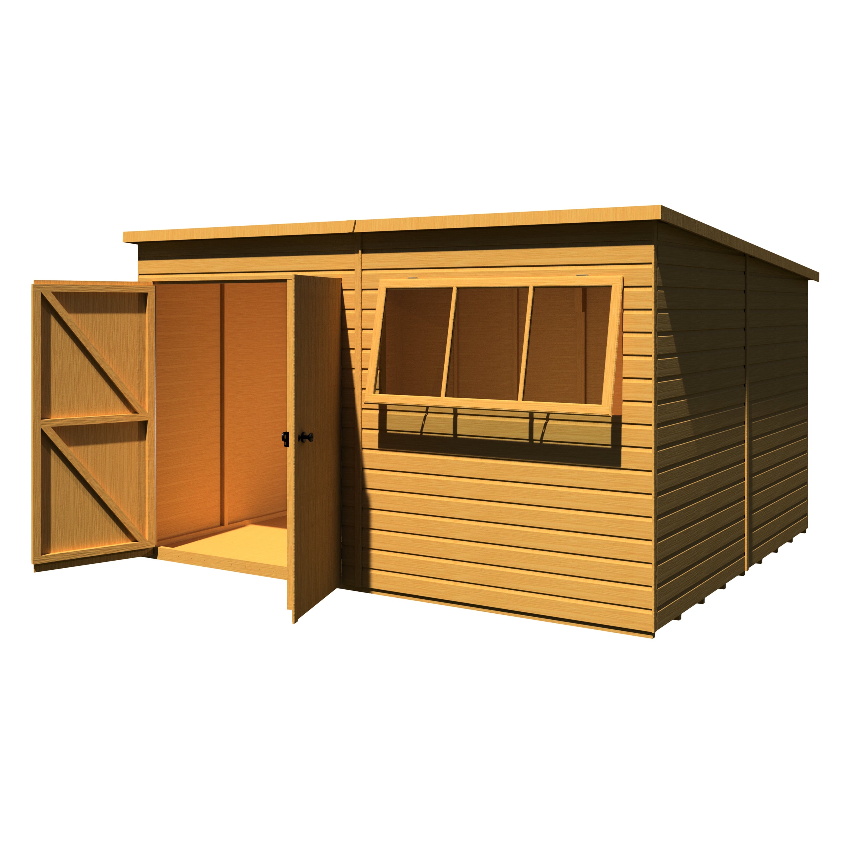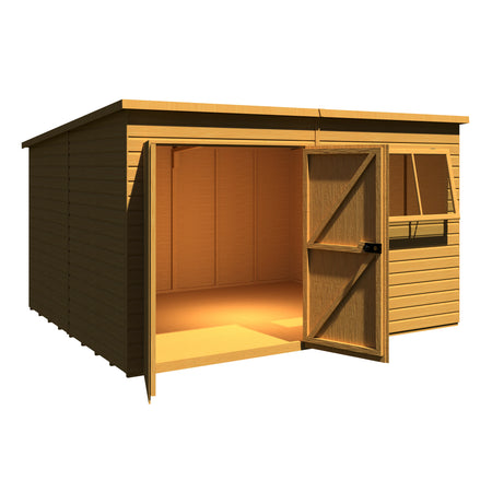 Shire 12x10 Ranger Pent Flatpack Garden Shed with Double Doors
