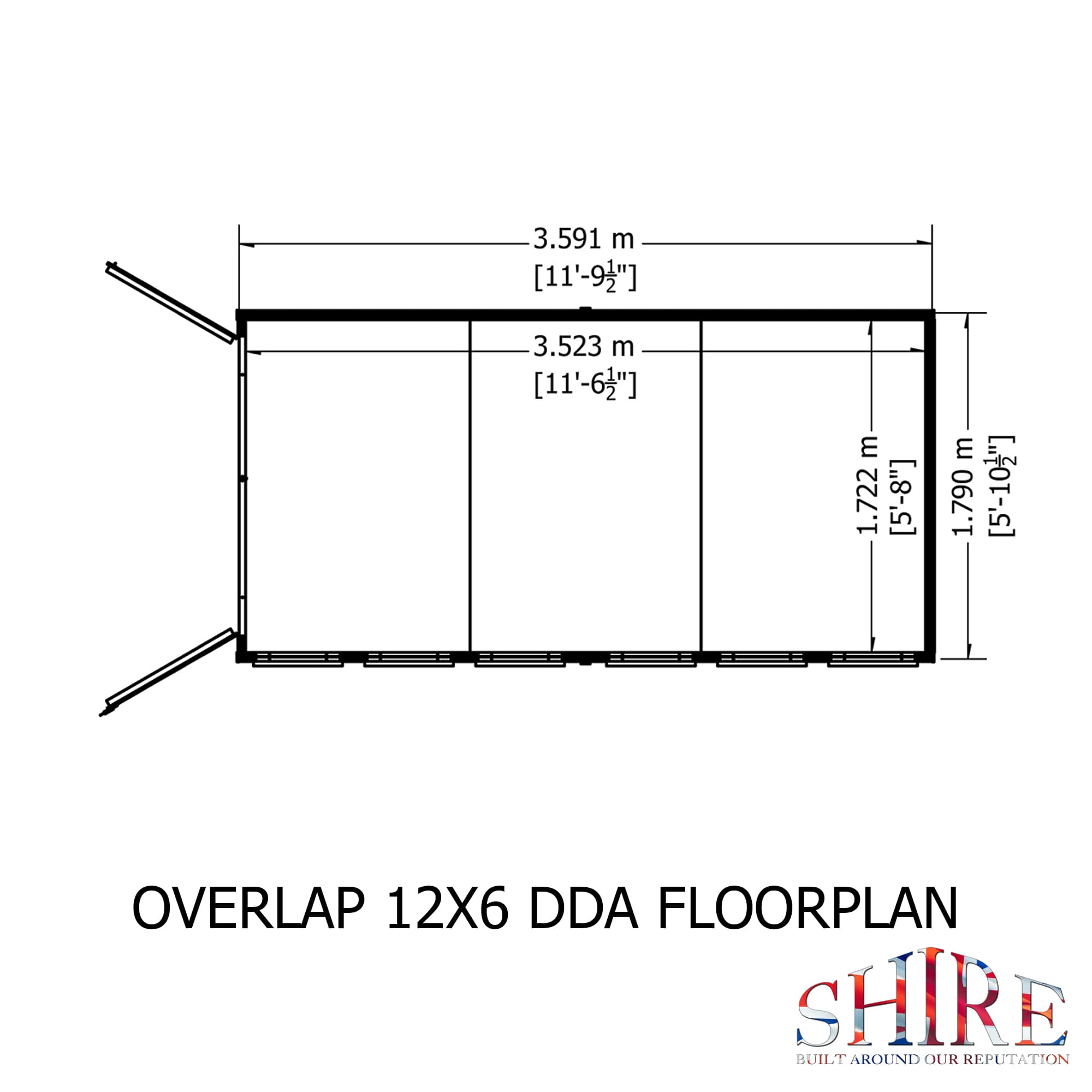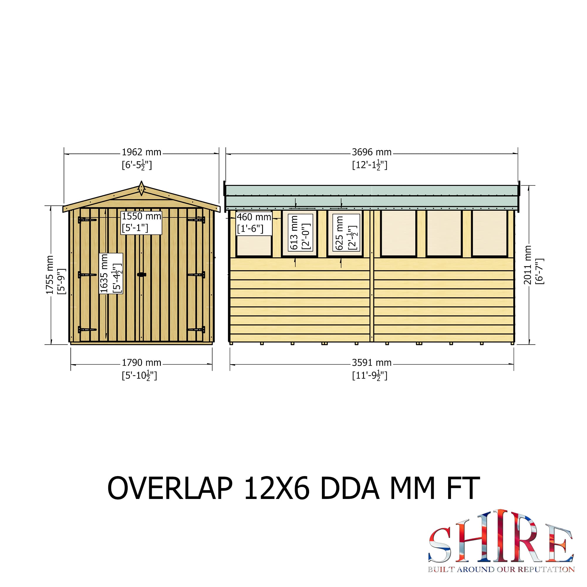 Shire 12x6 Pressure Treated Overlap Apex Garden Shed with Double Doors