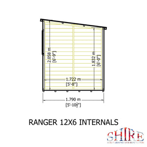 Shire 12x6 Ranger Pent Flatpack Garden Shed with Double Doors