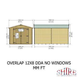Shire 12x8 Dip Treated Overlap Garden Shed with Double Doors (No Windows)
