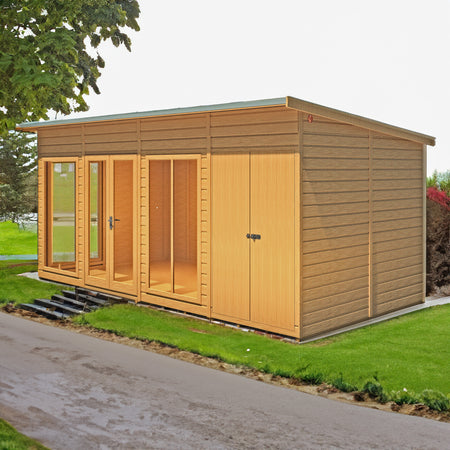 Elevate your garden experience with the Shire 16x8 Lela Large Summerhouse with Side Storage. Order now and create your perfect outdoor sanctuary!