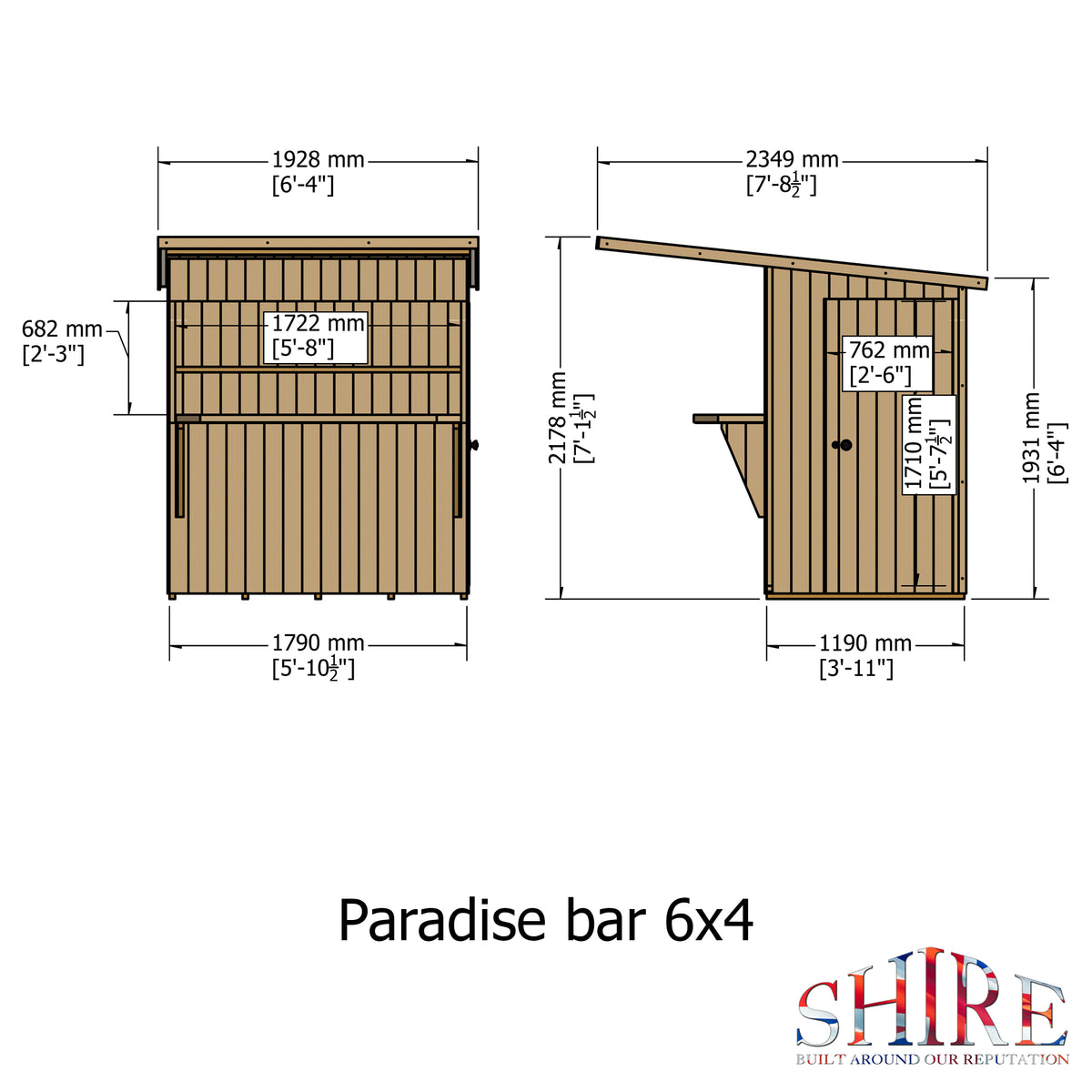 Shire 6x4 Pent Paradise Garden Bar Shed