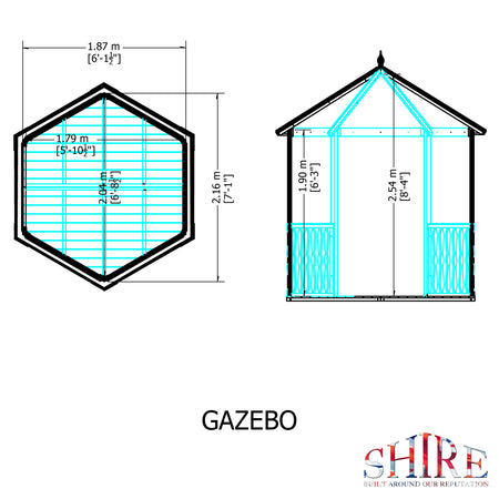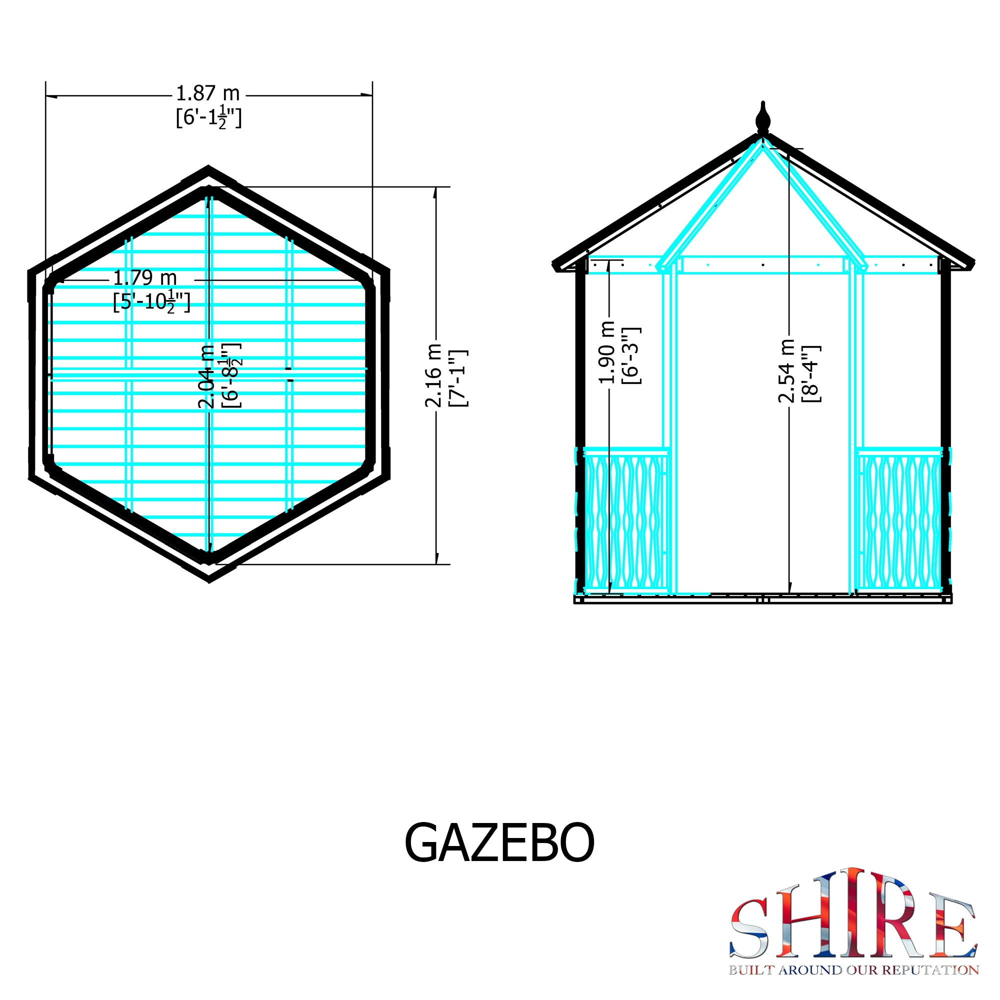 Shire 6x6 Gazebo Hexagonal Summerhouse with Georgian Windows & Single Door