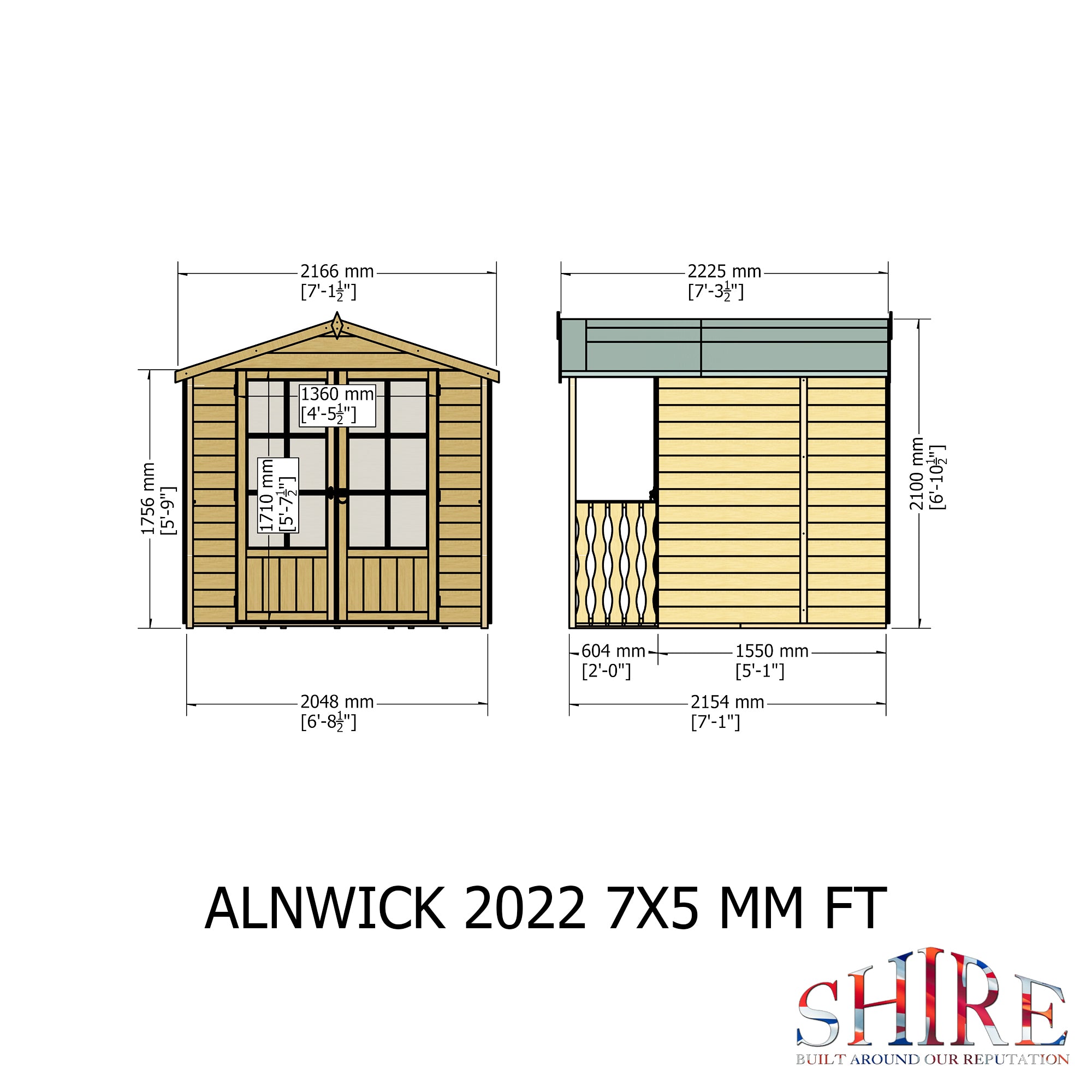 Shire 7x7 Alnwick Summerhouse with Double Doors & Veranda