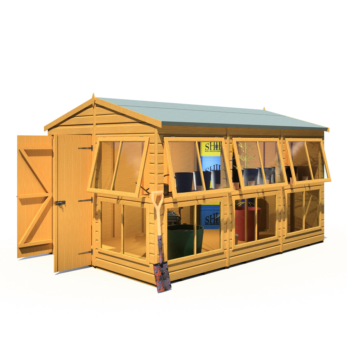 The Shire 8x12 Sun Hut Garden Potting Shed is your ultimate gardening companion, offering a spacious and well-lit environment for all your horticultural activities. Whether you're potting new plants, organising your gardening tools, or starting seedlings, this potting shed provides the perfect setting. Its generous dimensions and thoughtful design make it suitable for both casual gardeners and dedicated horticulturists, ensuring you have the space you need to cultivate your green thumb.