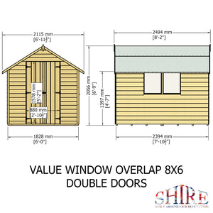 Shire 8x6 Overlap Double Door Value Garden Shed with Window