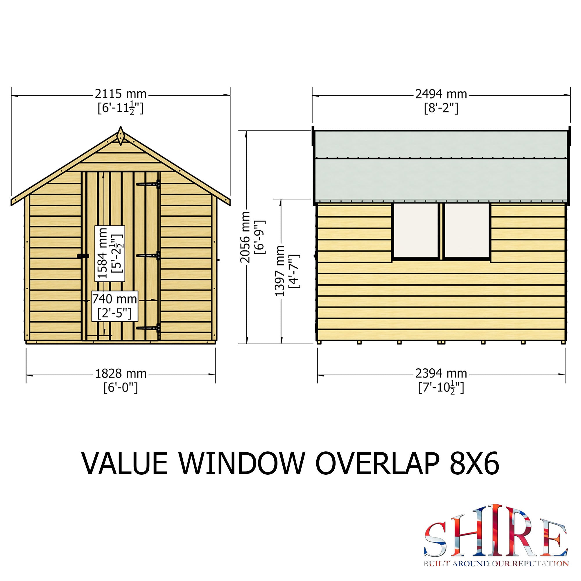 Shire 8x6 Overlap Single Door Value Garden Shed with Double Window