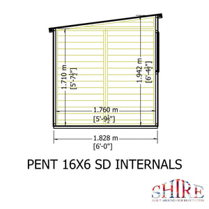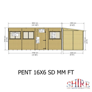 Shire Large 16x6 Shiplap Pent Wooden Garden Shed