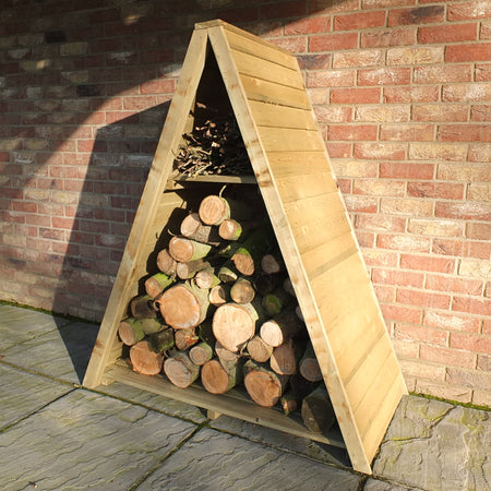 This attractive large triangular log store is made from pressure treated high grade overlap timber. It features a high level shelf to keep your kindling easily accesible. Following your order, you will be sent a link to choose your delivery day. On the morning of delivery day you will also receive live tracking information.
