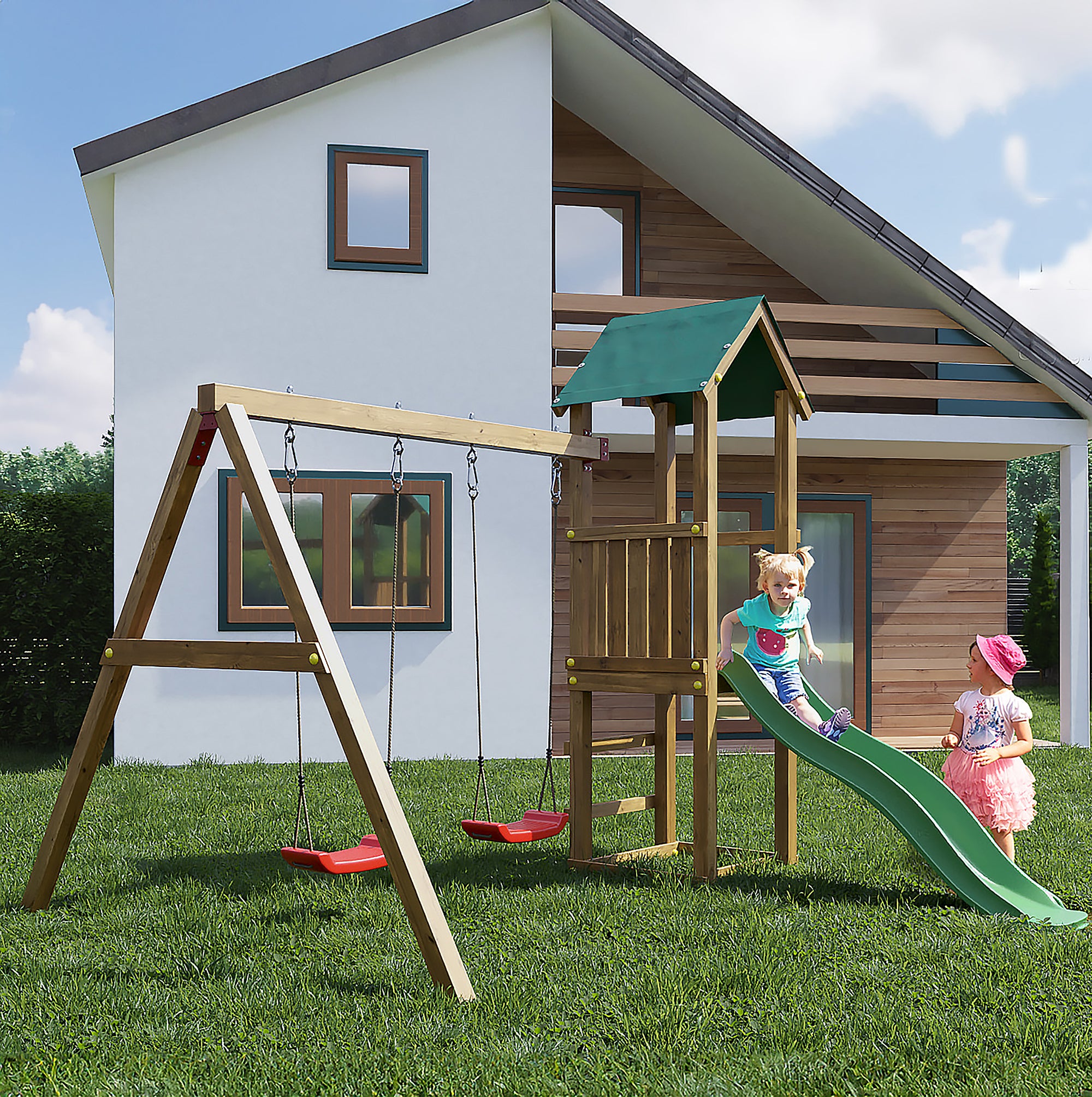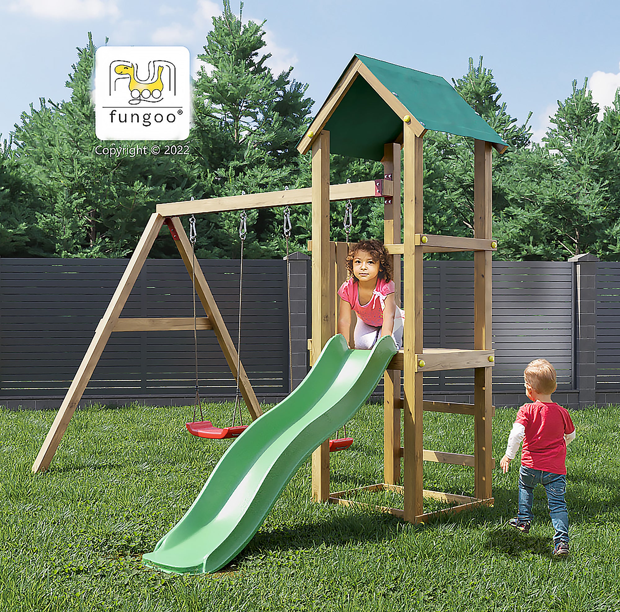 This playset is designed with both fun and functionality in mind. The multi-level fort provides a shaded area for imaginative play, while the swings and slide cater to children of different ages, making it a versatile addition to your garden. Installation is straightforward, and with minimal maintenance required, you can spend more time enjoying the outdoors with your children rather than worrying about upkeep.