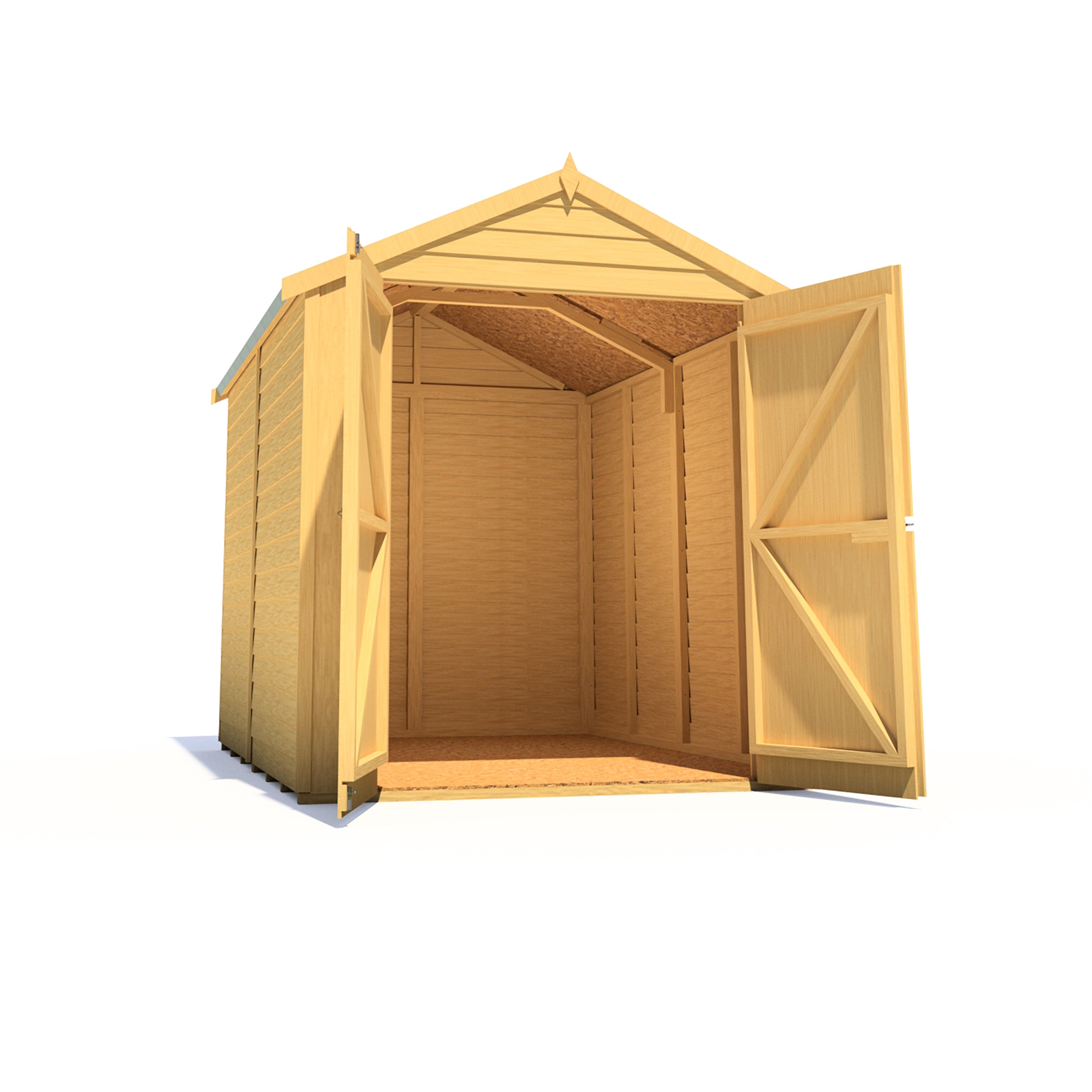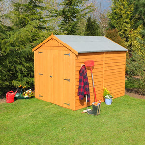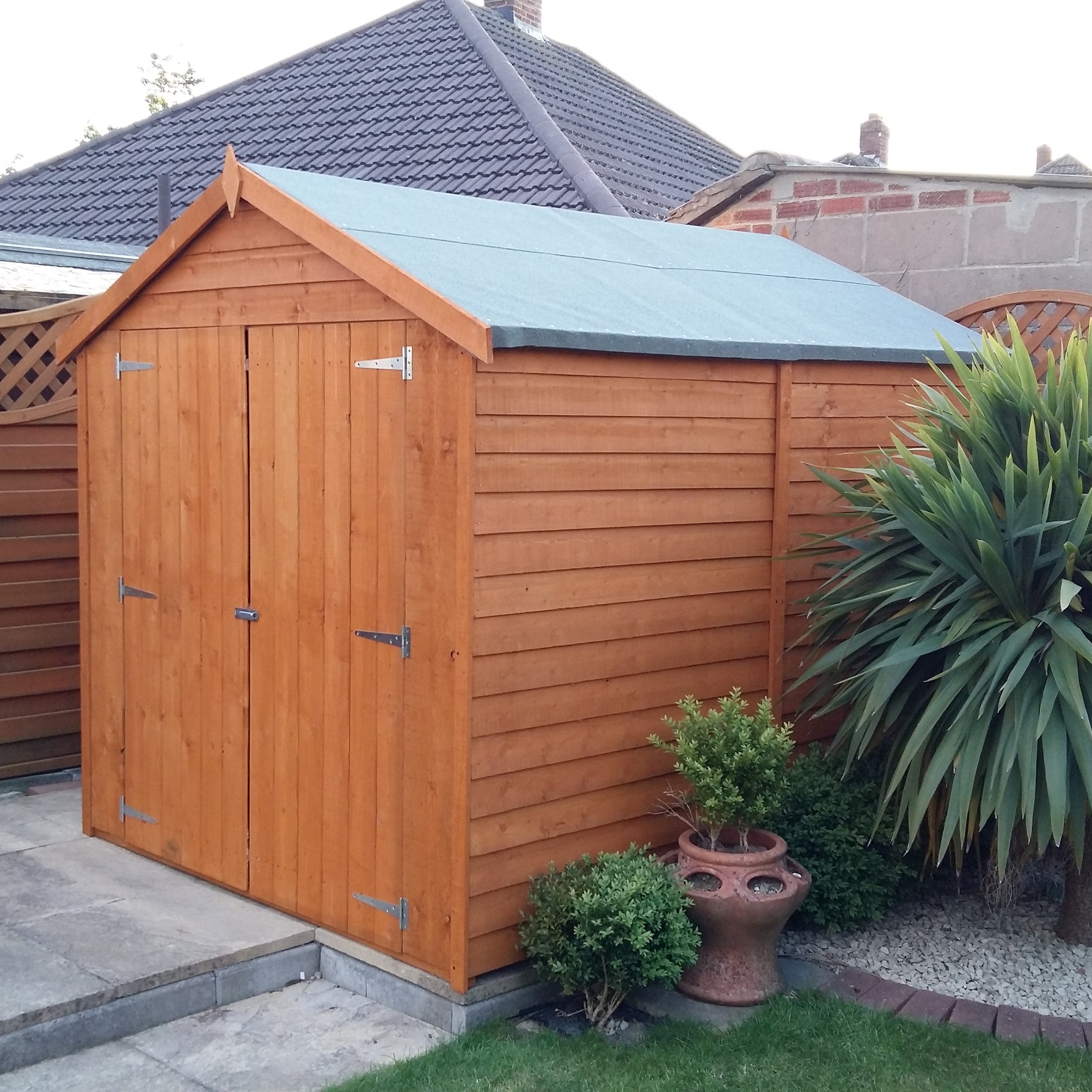 The 8' x 6' Overlap Double Door shed is distinguished from many of its competitors because of the wide double doors in the 6' gable and the generous eaves height which means that there is easy access to the entire space. It is manufactured from high grade, slow grown, FSC approved, European pine cladding boards over 34mm square framing. The doors are fitted with a hasp and staple catch ready for your own padlock. Both roof and floor are constructed from solid sheet OSB. There are no windows in this model. The building is dip treated with a basecoat ready for top coating by the customer immediately on installation. All fixings, mineral roof felt and assembly instructions are provided. (Imperial dimensions are approximate to the nearest foot, please refer to the exact metric dimensions given) Following your order, you will be sent a link to choose your delivery day. On the morning of delivery day you will also receive tracking information. Before you assemble your building, you will need a base which is flat and level to a sufficient size. Grass, soil or gravel are not sufficient as they will move with the weight of a building.