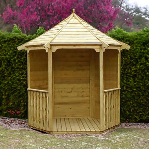 Transform your garden into a tranquil haven with the Shire Pressure Treated Hexagonal Garden Arbour. Order now and create the perfect outdoor retreat!